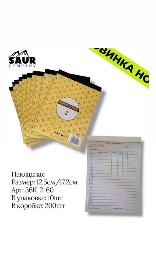№36К-2-60 Накладная арт. 36К-2-60 Накладная, артикул 36К-2-60 — бланк строгой отчётности, предназначенный для оформления и учёта товарных и финансовых операций. Формат 12.5 × 17.2 см удобен для использования в торговле, бухгалтерии и офисной работе. Изготовлена из качественной бумаги, обеспечивает чёткую печать и удобное заполнение.