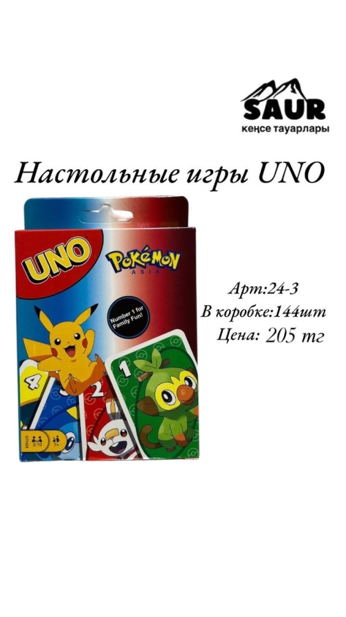 №24-3 Настольные игры/UNO/Карты/UNO UNO Minions— 1 из самых популярных и простых карточных игр во всем мире. Настольная игра для всей семьи УНО состоит из 108 игральных карт 4-х цветов: желтый, красный, зеленый и синий. Игральные карты уно выполнены из картона.Покрытие делает карты менее восприимчивыми к потертостям, дольше сохраняет первоначальную форму, а также сохраняет качество изображения на более долгий срок. Игра отлично подойдет для компаний до 10 человек. Карточный набор уно очень компактен, Вы можете брать его с собой куда угодно: кафе или прогулку — и Вы сможете отлично провести время. Карточная игра уно подойдет для игры в кругу семьи, друзей, коллег и любой большой компании! Цель игры: быстрее остальных участников избавиться от карт и успеть произнести «UNO», держа в руках последнюю карту! Игра Уно Флип похожа на обычное уно, при этом имеет новые, более интересные правила. Главные преимущества игры — двусторонние карты (с одной стороны темные, с другой светлые) и новая карточка, благодаря чему классическая настольная игра UNO FLIP станет более увлекательной. Правила очень просты, на их освоение уйдет не более 10 минут, поэтому подходит настольная игра для взрослых и детей. Уно развивает мышление, логику, реакцию и мелкую моторику рук, что делает карточную игру для детей не только занимательной, но и полезной! Настольная игра для компании уно — отличный презент для похода в гости. Карточки uno - хорошее дополнение к подарку на день рождения, новоселье!