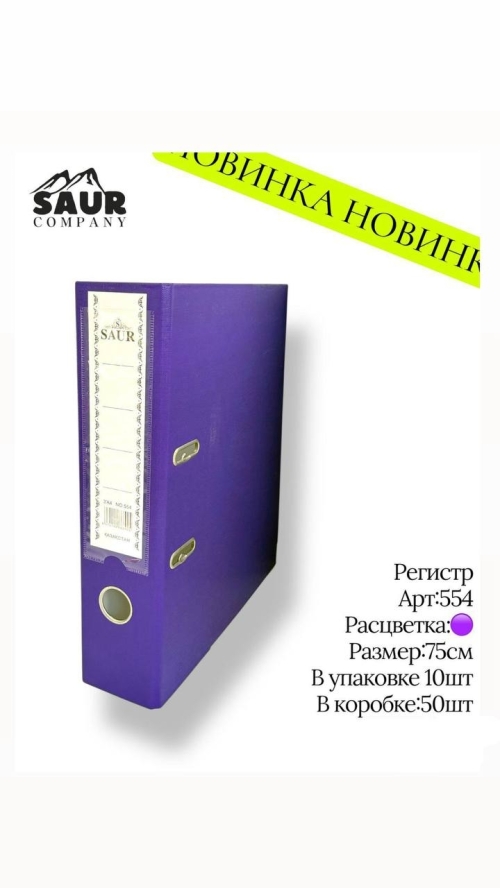 Фиолетовый регистр, арт.554. Размер — 75 мм. В упаковке — 10 шт, в коробке — 50 шт. 📂🔵