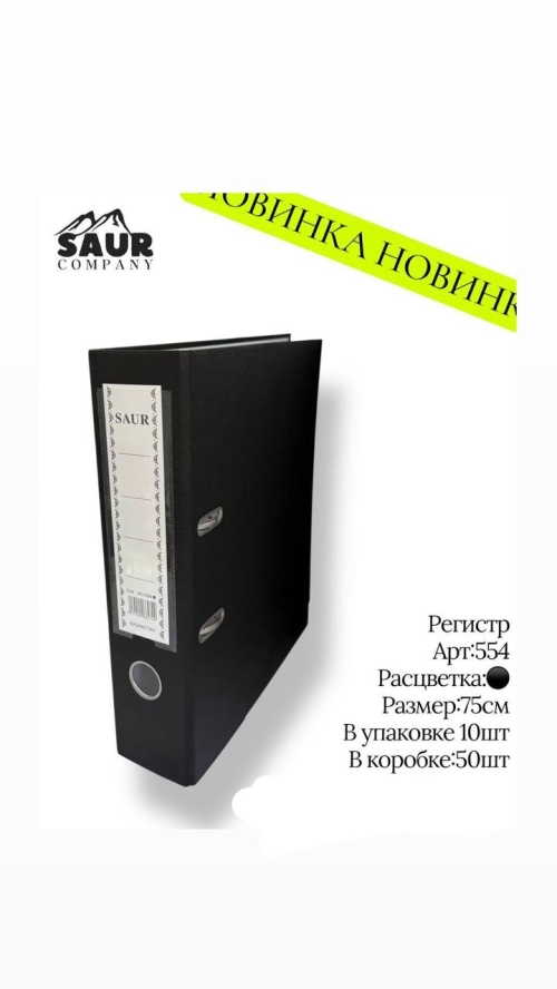 Черный регистр, артикул 554. Размер — 75 мм. В упаковке — 10 шт, в коробке — 50 шт. 📂⚫