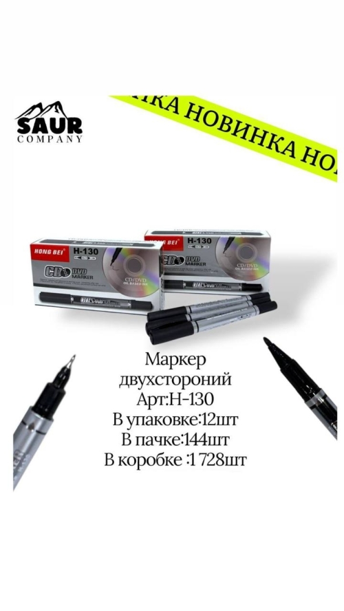 №H-130 Двухсторонний маркер арт.H-130 Перманентный маркер для подписи CD дисков — это отличное решение для всех ценителей музыки и цифровых архивов! Благодаря специальной формуле чернил, он быстро высыхает и не размазывается. Обеспечивает отличное качество надписи, не повреждая информацию, хранящуюся на CD, CD-R и DVD-дисках. Маркер двусторонний, выполнен в пластиковом корпусе и снабжен круглым наконечником. Толщина линии письма — 0,7 и 1 мм. Тонкий наконечник, с одной стороны, позволяет написать и уместить больше информации на поверхности диска. Благодаря своей водостойкости и стойкости к ультрафиолетовому излучению, маркер обеспечивает долговечное и надежное размещение текста. Такой нестираемый маркер станет незаменимым помощником для всех, кто заботится о сохранности своей музыкальной коллекции и хочет делать ее еще более оригинальной и удобной в использовании.