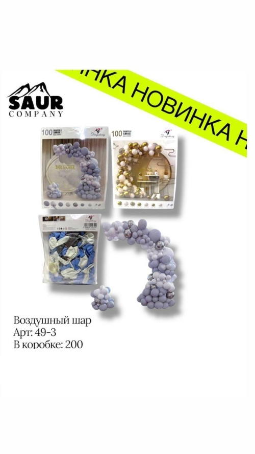 №49-3 Набор воздушных шаров, 100 штук, арт.49-3 Набор воздушных шаров, 100 штук, артикул 49-3 — практичный комплект для праздников и мероприятий. В наборе разноцветные латексные шары высокого качества, которые отлично подходят для оформления залов, фотозон, детских и взрослых торжеств. Шары прочные, эластичные, хорошо держат форму и могут наполняться как воздухом, так и гелием.