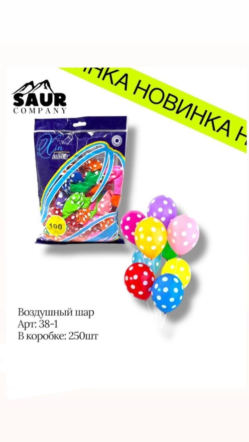№38-1 Цветные воздушные шары арт.38-1 Цветные воздушные шары, артикул 38-1 — яркие латексные шары, идеально подходящие для украшения дней рождений, свадеб, детских праздников и других торжественных мероприятий. Разнообразие цветов позволяет создавать красивые композиции и фотозоны. Изготовлены из прочного и эластичного материала, хорошо держат форму и могут наполняться как воздухом, так и гелием.