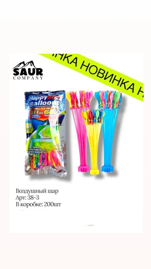 №38-3 Воздушный шар арт.38-3 Эти водяные шарики предназначены для веселых игр и водных битв. Они легко и быстро наполняются водой, автоматически завязываются и готовы к использованию за считанные секунды!