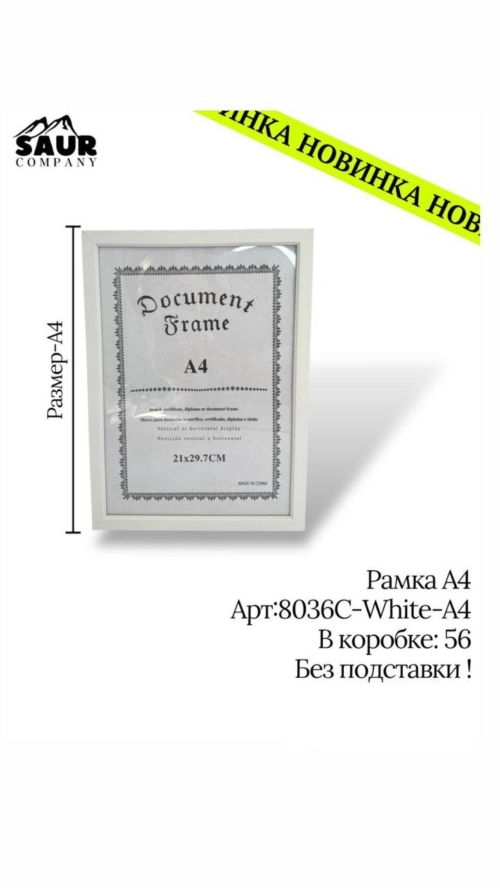 №8036C- white Рамка А4 арт.8036C- white Рамка А4 — классическая рамка для фото, дипломов и сертификатов формата A4 (21×29,7 см). Подходит для настенного или настольного размещения.