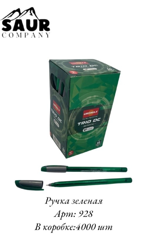 №928 Зелёная ручка Шариковая ручка с корпусом зелёного цвета. Обеспечивает плавное и чёткое письмо, подходит для повседневного использования в школе, офисе или дома. Эргономичная форма корпуса удобно лежит в руке. Цвет чернил — зелёный (или укажите, если чернила синего/чёрного цвета). Лёгкая, практичная и долговечная.