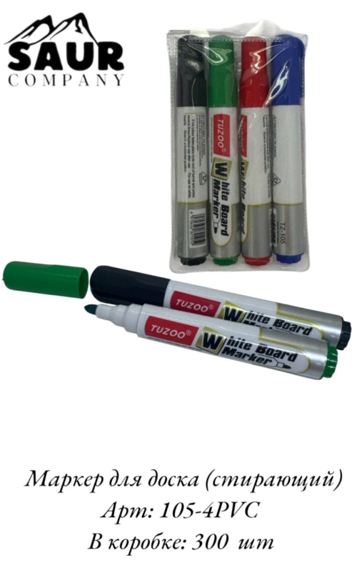 №105-4PVC Маркер стирающий Маркер со стираемыми чернилами, предназначен для письма на белых магнитных досках (whiteboard). Обеспечивает яркое и чёткое письмо, легко удаляется сухой тряпкой или губкой без следов. Быстро сохнет, не размазывается, не имеет резкого запаха. Идеально подходит для школ, офисов и презентаций. Эргономичный корпус удобно лежит в руке. Цвет чернил —чёрный, синий, красный и зелёный.