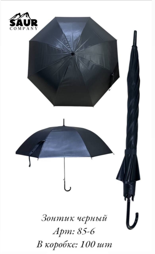 Классический складной зонтик чёрного цвета. Компактный и удобный в использовании, защищает от дождя и солнца. Подходит для повседневного ношения.