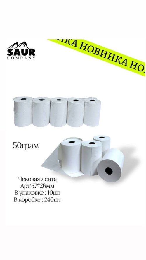 №57ММ*26М Чековая лента 57мм × 26м Чековая лента 57мм × 26м – термобумага для кассовых аппаратов и POS-принтеров. Обеспечивает чёткую печать без чернил, подходит для большинства устройств с шириной ленты 57 мм.