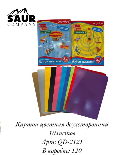 №QD-2121 Двухсторонний цветной картон арт.QD-2121 Яркий и плотный цветной картон для детского творчества, поделок, аппликаций и оформления. Легко режется и отлично держит форму. Подходит для школы, дома и занятий в кружках. В наборе — разнообразные насыщенные цвета.