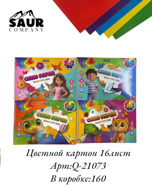№QD-21073 Цветной картон, 16 листов Набор плотного цветного картона из 16 ярких листов. Идеально подходит для творчества, аппликаций, поделок и оформления. Легко режется, держит форму и хорошо сочетается с цветной бумагой. Отличный выбор для школы и детского рукоделия.