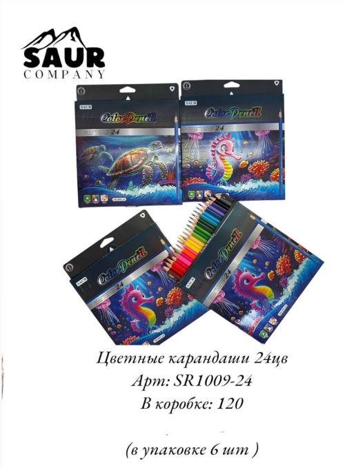 №SR1009-24 Цветные карандаши 24 цвета Набор из 24 цветных карандашей с яркими и насыщенными оттенками. Подходят для рисования, раскрасок, школьных и творческих занятий. Карандаши легко затачиваются, мягко рисуют и не крошатся. Идеальный выбор для детей и взрослых, увлечённых творчеством.