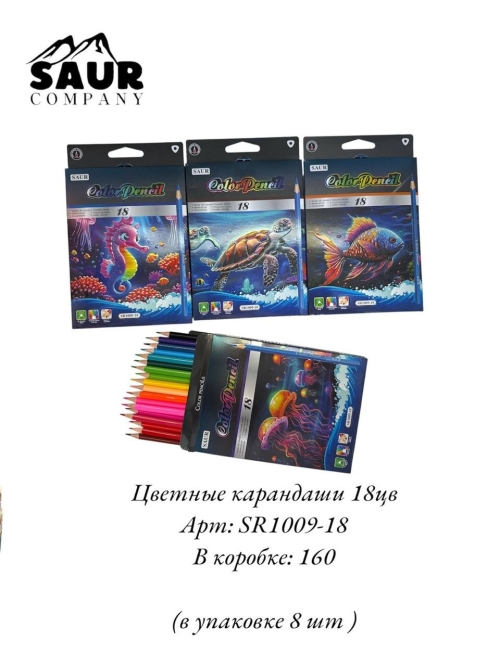 №SR1009-18 Цветные карандаши 18 цветов Набор из 18 ярких цветных карандашей для рисования и творчества. Обеспечивают насыщенные и ровные цвета, легко затачиваются и подходят для детей и взрослых. Отличный выбор для школы, дома и художественных занятий.