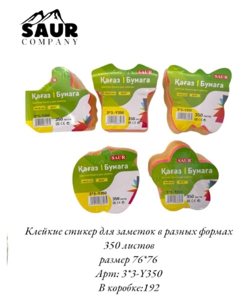 №3*3-Y350 Стикеры, 350 листов арт.3*3-Y350 Клейкие стикеры разных форм