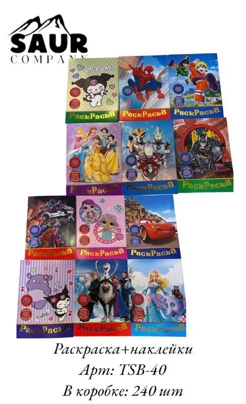 №TSB-40 Раскраска с наклейками Раскраска с наклейками — увлекательный набор для творчества. Внутри страницы для раскрашивания и яркие наклейки. Подходит для детей, развивает воображение и моторику.