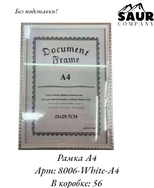 Рамка А4 — классическая рамка для фото, дипломов и сертификатов формата A4 (21×29,7 см). Подходит для настенного или настольного размещения.