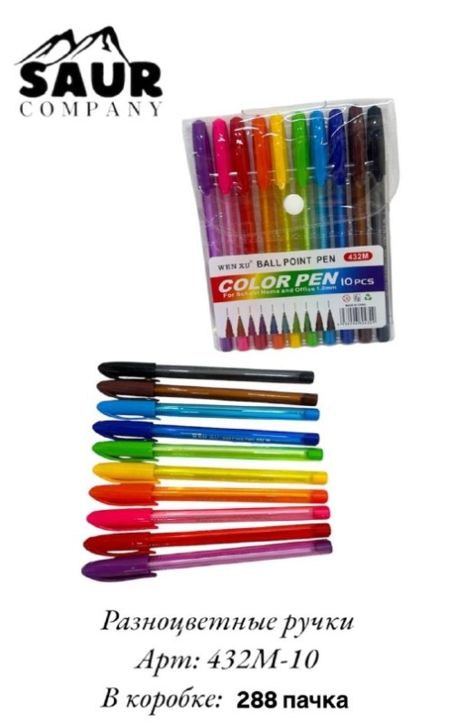 №432М-10 Ручки разноцветные, 10 цветов Набор разноцветных ручек из 10 ярких оттенков идеально подойдёт для письма, заметок, раскрашивания и оформления творческих работ. Чернила ложатся ровно и чётко, не размазываются и быстро сохнут. Ручки удобно лежат в руке, а разнообразие цветов делает процесс письма более увлекательным.