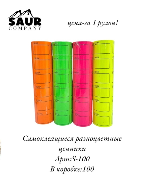 №S-100 Ценники самоклеящиеся разноцветные Разноцветные самоклеящиеся ценники — удобное решение для выделения акций, распродаж и маркировки товаров. Яркие цвета хорошо заметны и привлекают внимание покупателей. Легко наклеиваются на различные поверхности и прочно держатся. Подходят для ручной подписи и использования в этикет-пистолетах (при совместимости).