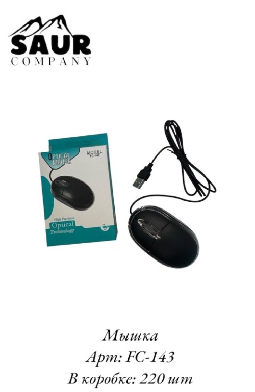 №FC-143 Проводная компьютерная мышка Проводная мышка с удобной формой обеспечивает стабильное соединение и точное управление курсором. Подключается через USB и не требует установки драйверов — просто подключите и начинайте работу. Идеальна для офиса, учёбы и повседневного использования.