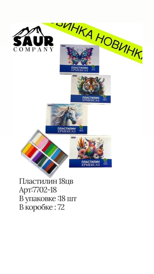 №7702-18 SR Пластилин, 18 цветов арт.7702-18 Большой набор пластилина из 18 ярких и насыщенных цветов — прекрасный выбор для детей, увлечённых лепкой и творчеством. Идеально подходит для детского сада, школы и домашних занятий. Пластилин легко разминается, держит форму и не прилипает к рукам.