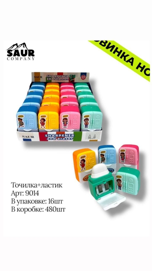 №SR-9014 Точилка с ластиком 2 в 1, арт.SR-9014 Холодильник-точилка — оригинальная точилка в форме мини-холодильника, с контейнером для стружки, удобная и забавная для школьных принадлежностей.