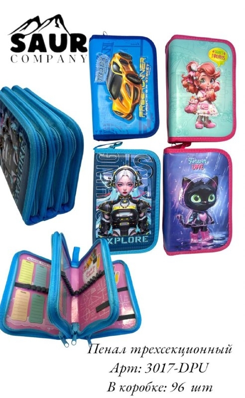№3017-DPU Пенал трехсекционный (3017-DPU) Пенал трехсекционный – вместительный и удобный, с отделениями для ручек, карандашей, линейки и других канцелярских принадлежностей. Подходит для школьников и студентов, помогает держать все в порядке.