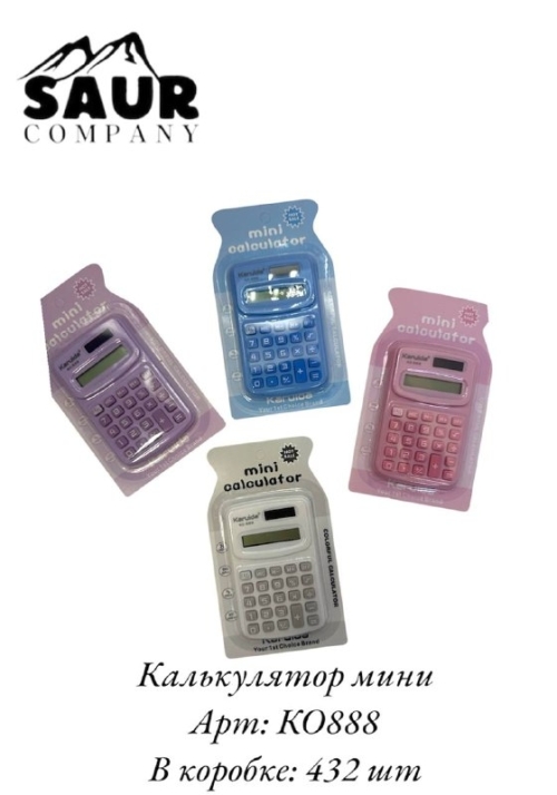 Мини-калькулятор, арт.КО888 – компактный и удобный калькулятор для дома, офиса или учебы. В коробке 432 шт.