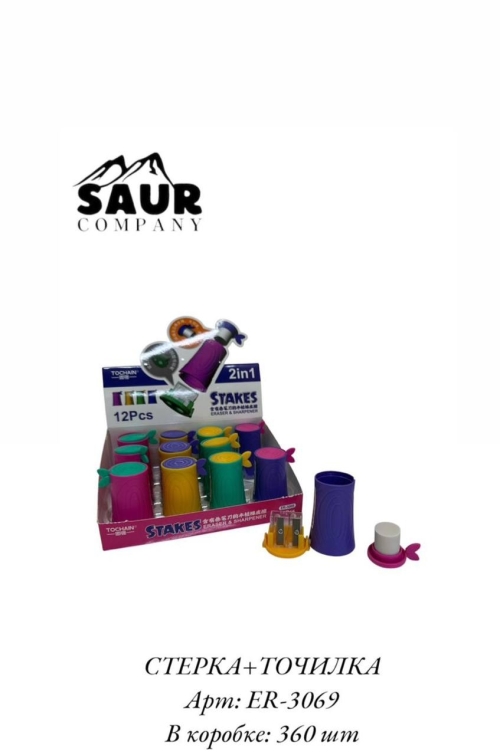 Ластик и точилка 2 в 1, арт. ER-3069 – удобный и компактный набор для школы и офиса, совмещающий точилку и ластик в одном. В коробке 360 шт.