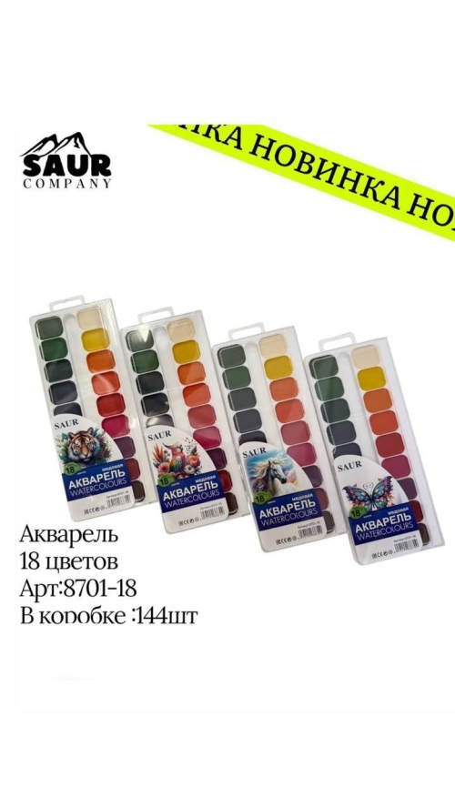 №8701-18 Акварельные краски, 18 цвета (8701-18) Акварель, 18 цветов, арт. 8701-18, в коробке 144 шт.