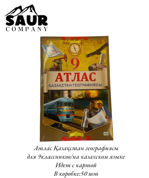 №4763 Атлас «Қазақстан географиясы» 9 класс (каз. яз.) Атлас «Қазақстан географиясы» для 9 класса (казахский язык) с картой, в коробке 50 шт