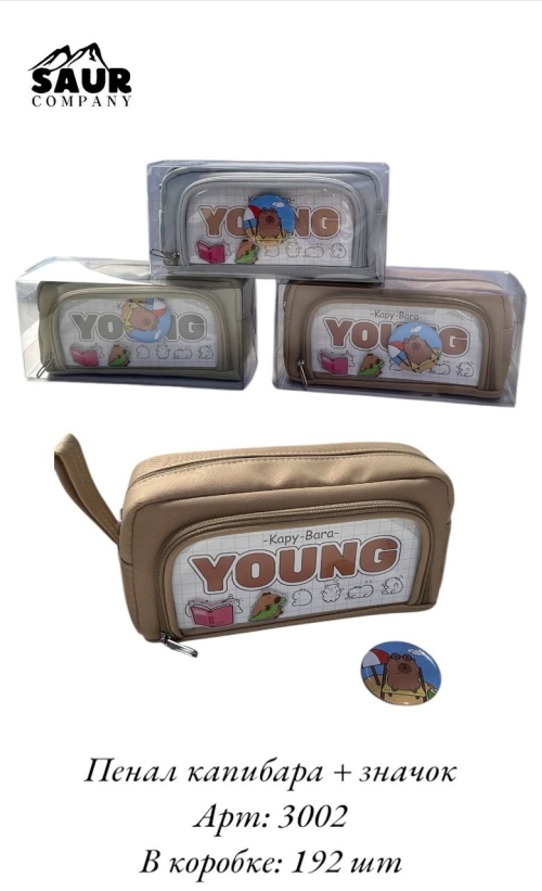 Яркий пенал с изображением «Капибара» и значком, удобен для школы и творчества. В коробке 192 шт.