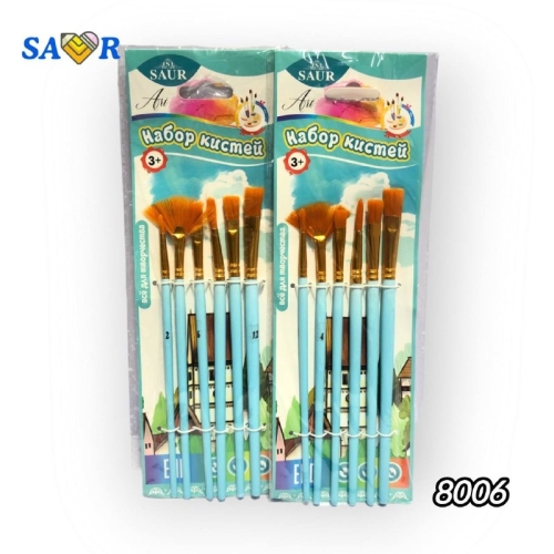 №8006 Кисточка для рисования, 6 шт арт.8006 Набор кисточек для рисования из качественного материала. Подходят для акварели, гуаши и других красок. Удобные в использовании, идеально подходят для школьных и творческих занятий.
