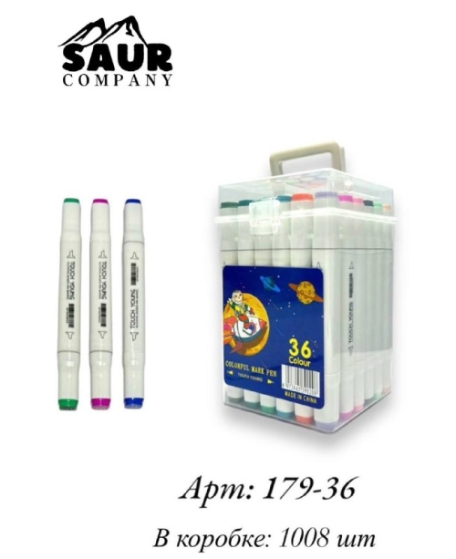 Набор ярких двухсторонних маркеров в 36 насыщенных цветах. Один наконечник – тонкий для аккуратных линий и подписей, другой – широкий для закрашивания и выделения текста. Удобны для учебы, творчества и работы.