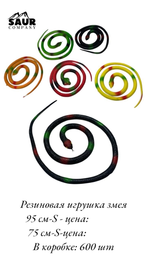 №75 CM-S Игрушка «Змея», длина 75 см Игрушка «Змея» резиновая, длина 75 см. Гибкая и безопасная для детей, подходит для игр дома и на улице. Изготовлена из прочного и качественного резинового материала, приятного на ощупь и долговечного. В коробке – 600 шт.