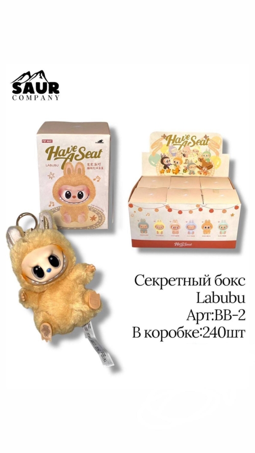 №BB-2 Секретный бокс Labubu, арт.BB-2 Секретный бокс Labubu, артикул BB-2. Коллекционная игрушка-сюрприз в стильной коробочке: внутри может оказаться одна из разных фигурок Labubu из серии Have A Seat. Яркий дизайн и элемент неожиданности делают набор отличным подарком и украшением коллекции. В коробке – 240 шт.