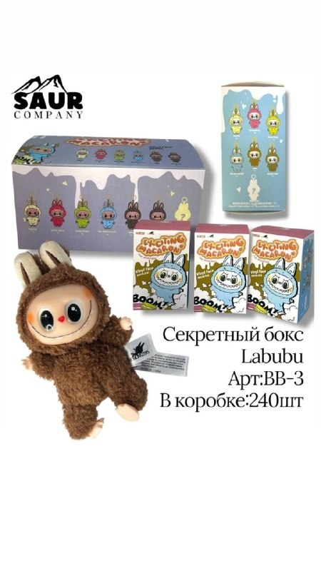 №BB-3 Секретный бокс Labubu, арт.BB-3 Секретный бокс Labubu, артикул BB-3. Коллекционная игрушка-сюрприз в стильной коробочке: внутри может оказаться одна из разных фигурок Labubu из серии Have A Seat. Яркий дизайн и элемент неожиданности делают набор отличным подарком и украшением коллекции. В коробке – 240 шт.