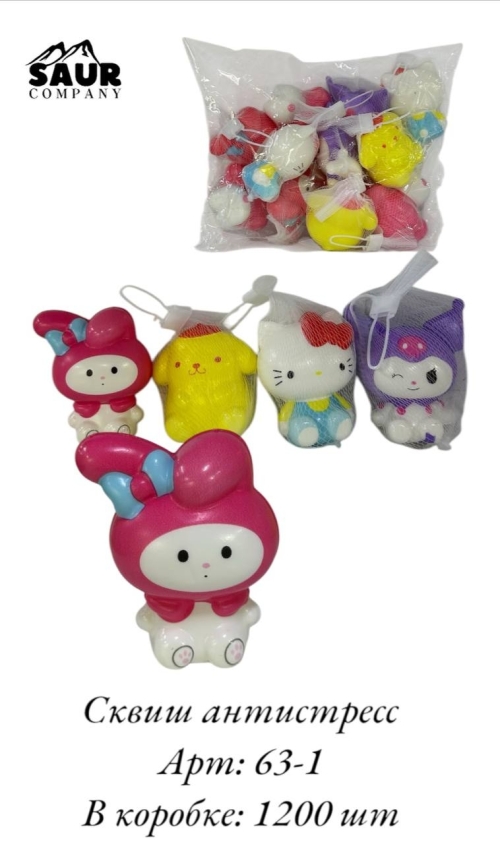 №63-1 Сквиш игрушка-антистресс, арт.63-1 Сквиш игрушка-антистресс, артикул 63-1. Мягкая и приятная на ощупь игрушка, которая отлично снимает напряжение и стресс. При сжатии быстро восстанавливает форму, подходит для игр, релаксации и развития моторики. Яркий дизайн делает её привлекательной для детей и взрослых. В коробке – 1200 шт.