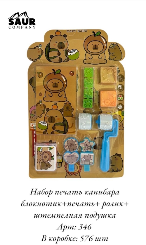 Набор «Капибара» для печати Состав набора: Блокнотик, печать, ролик, штампельная подушка Артикул: 346 Количество в коробке: 576 шт