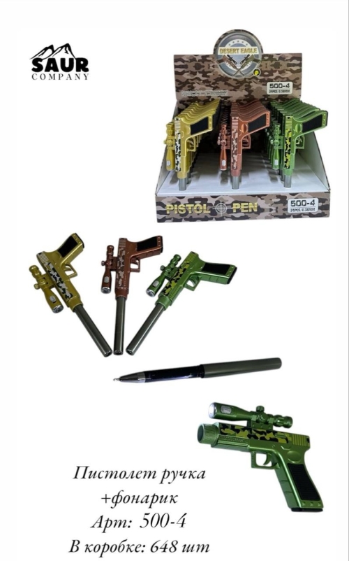 Ручка-пистолет с фонариком Артикул: 500-4 Количество в коробке: 648 шт