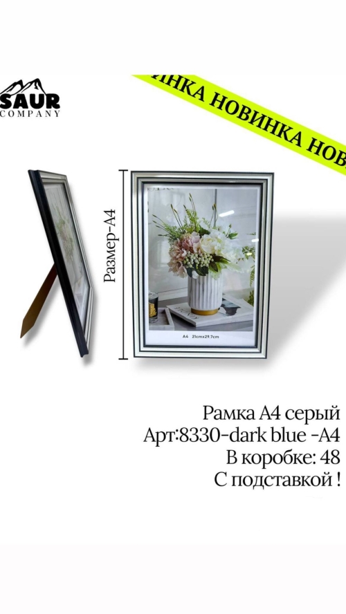 Рамка А4 (тёмно-синяя, с подставкой) Артикул: 8330-Dark Blue-A4 В коробке: 48 шт ✅