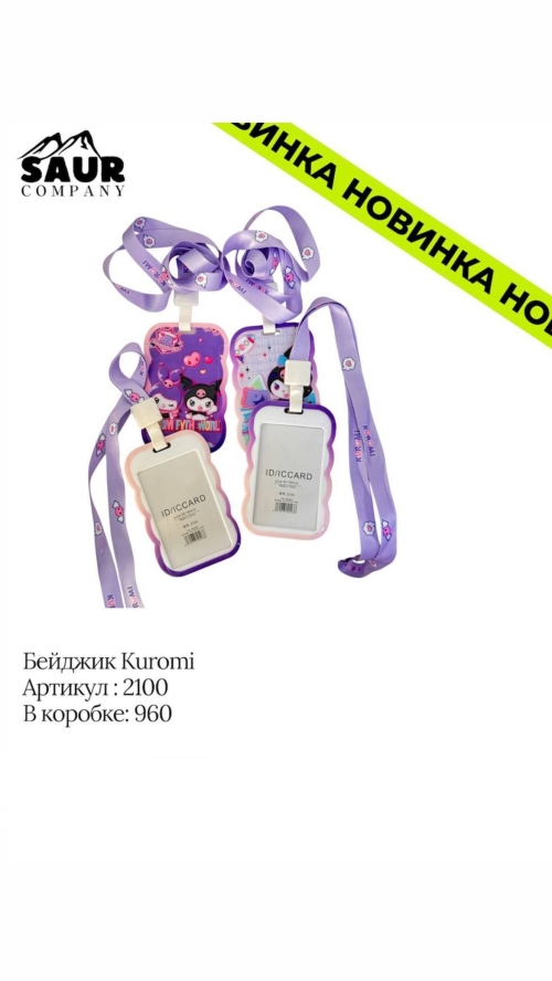 Бейджик Kuromi вертикальный Артикул: 2100 В коробке: 960 шт