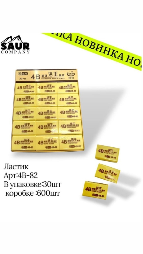 Ластик Артикул: 4B-82 Упаковка: 30 шт в упаковке,600 шт в коробке ✅