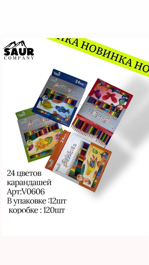 Цветные карандаши, 24 цвета Артикул: V0606 Упаковка: 12 шт в упаковке, 120 шт в коробке ✅