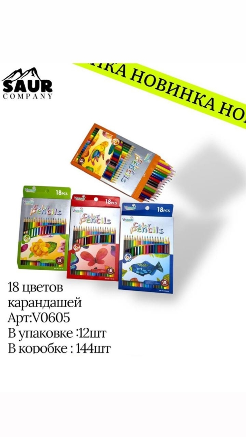 Цветные карандаши, 18 цвета Артикул: V0605 Упаковка: 12 шт в упаковке, 144 шт в коробке ✅