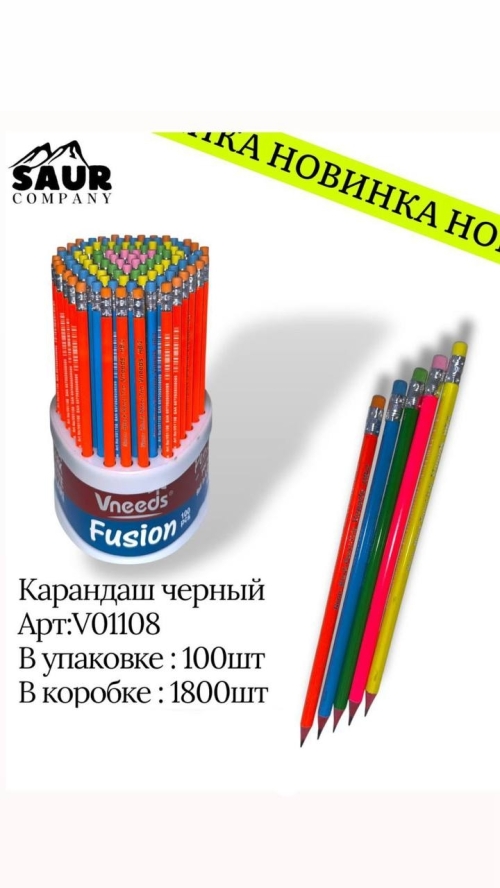 Карандаш черный Артикул: V01108 Упаковка: 100 шт в упаковке, 1800 шт в коробке ✅