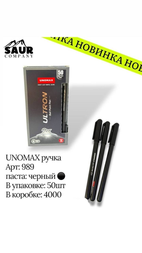 Ручка Unomax Артикул: 989 Цвет пасты: черный Упаковка: 50 шт в упаковке, 4000 шт в коробке ✅