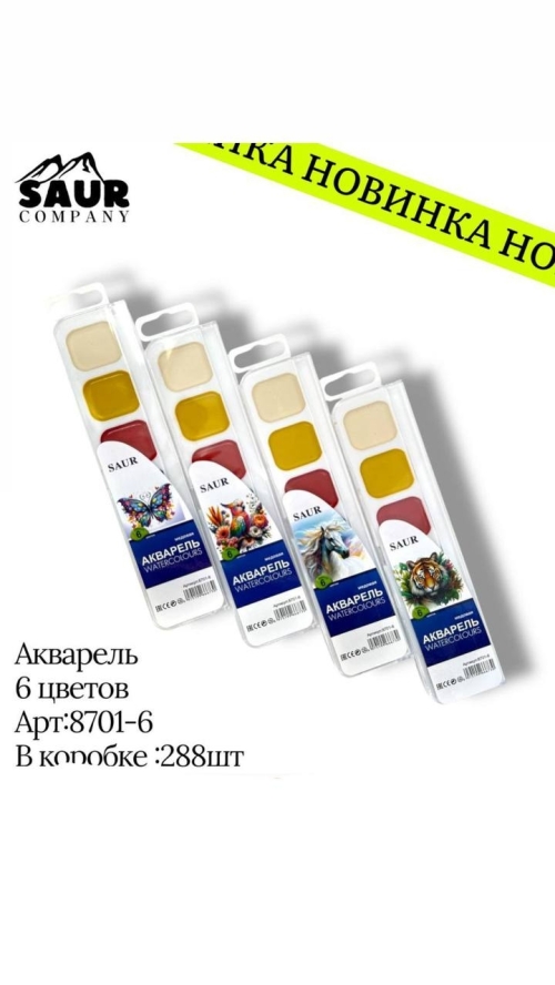 Акварельная краска, 6 цветов Артикул: 8701-6 Упаковка: В коробке 288 шт