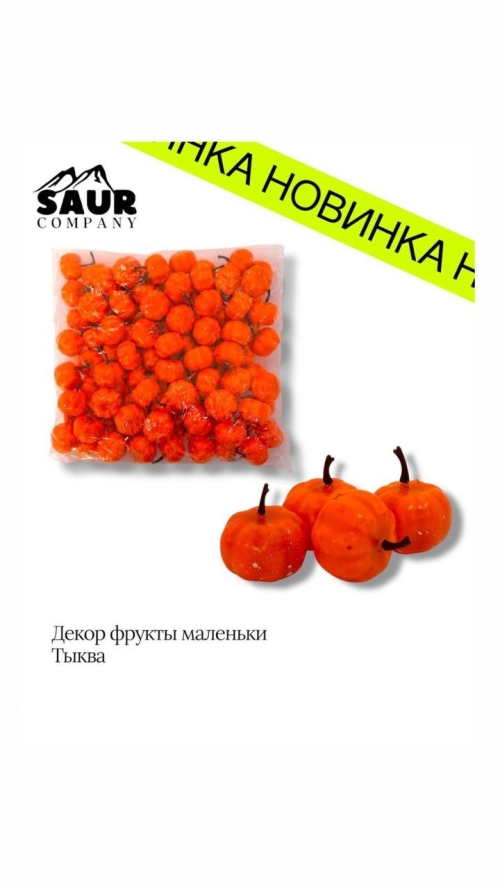 №8957 Тыква декоративная, маленькая Небольшая декоративная тыква для оформления интерьера, праздничного декора, фотозон и композиций. Идеально подойдёт для осеннего украшения и тематических мероприятий. Лёгкая и прочная, сохраняет яркий внешний вид длительное время.