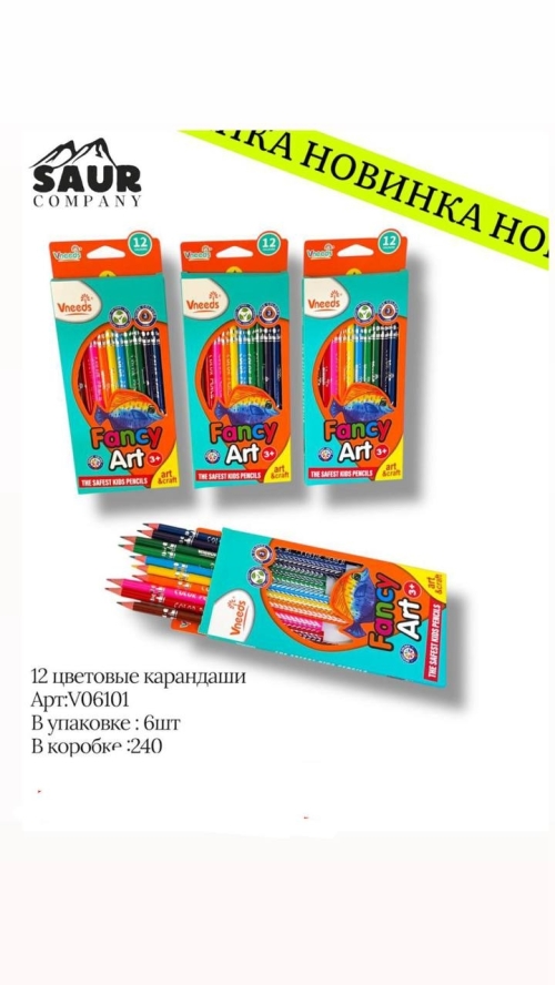 Цветные карандаши, 12 цветов, артикул V06101. В упаковке — 6 шт, в коробке — 240 шт. ✏️🌈