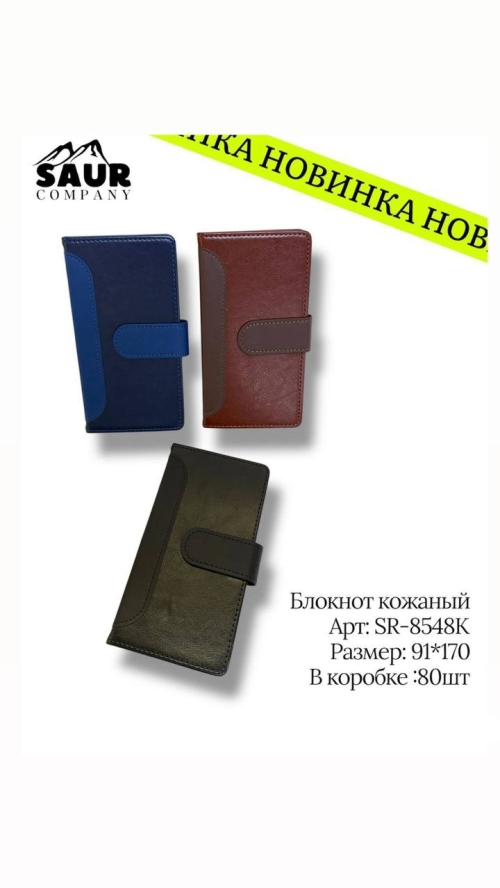 Кожаный блокнот, артикул SR-8548K. Размер — 91×170 мм. В коробке — 80 шт. 📝✨